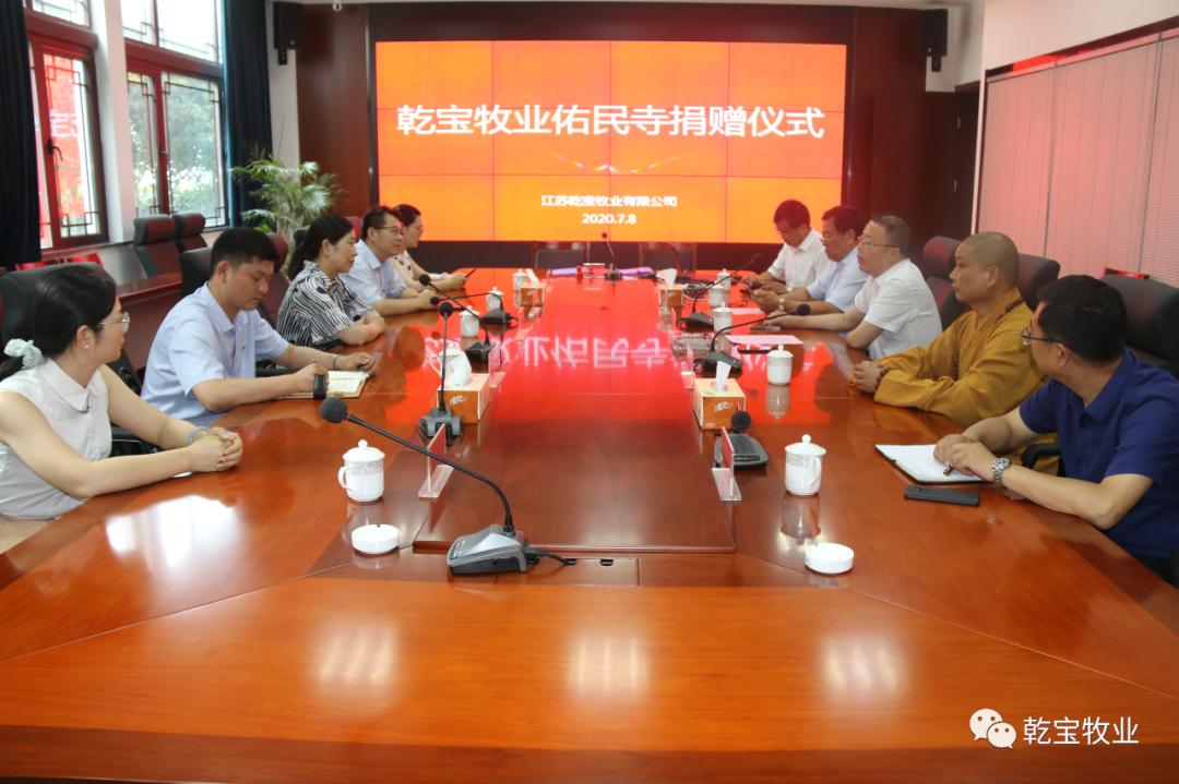 2020年7月8日下午,乾寶牧業(yè)公司舉行了隆重的捐贈儀式,由乾寶牧業(yè)公司建造的佑民寺捐贈給鹽城市亭湖區(qū)佛教協(xié)會。