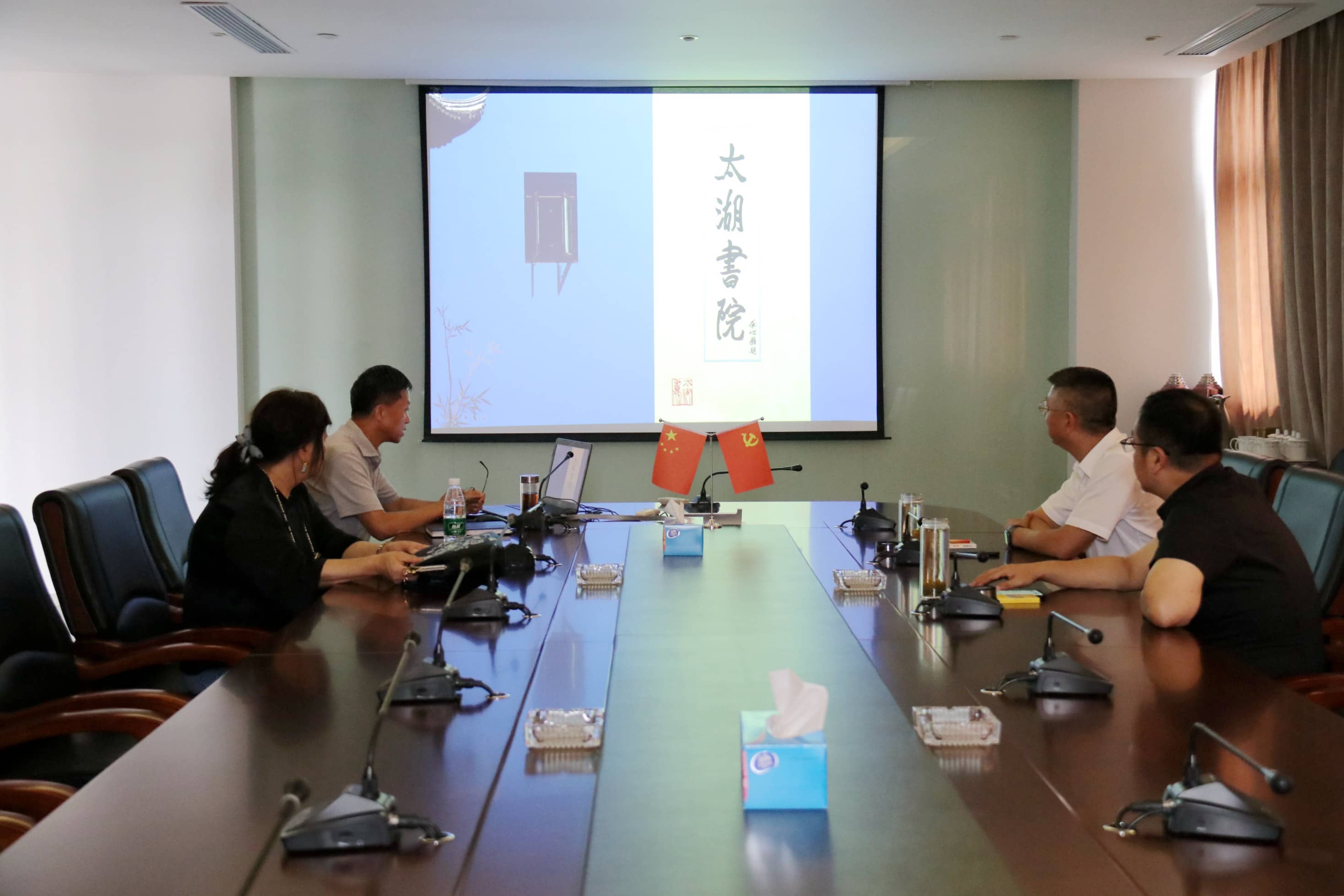 202099日,金星銅集團副總裁、北方區總經理、北京798朱炳仁藝術博物館館長、北京故宮銅器館館長、北京前門銅器館館長、書法家、水彩畫家董竹應許建華副院長之邀來訪太湖書院。太湖書院執行院長王建明、太湖書院副院長許建華、天堂美景觀綠化有限公司總經理馬向農等人熱情接待。