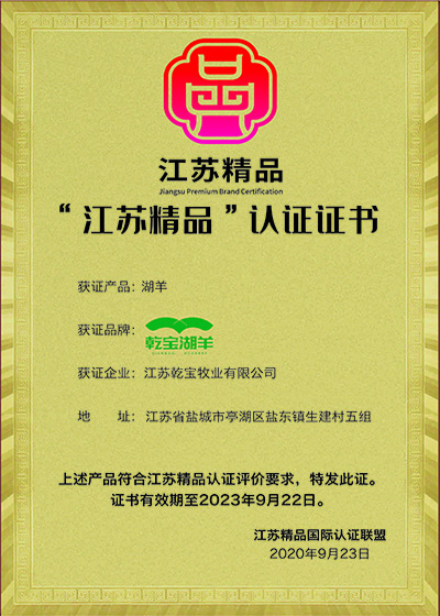 江蘇精品認證證書