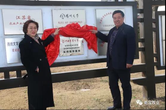 自乾寶牧業(yè)公司成立之日起,中國(guó)農(nóng)業(yè)大學(xué)羅海玲教授就帶著振興中國(guó)畜牧業(yè)的情懷,在基地設(shè)計(jì)、養(yǎng)殖技術(shù)、疫病防治、飼料配方等方面,給予大力幫助和指導(dǎo)。動(dòng)物科技學(xué)院有關(guān)領(lǐng)導(dǎo)也到公司實(shí)地考察并給予極大支持。中國(guó)農(nóng)業(yè)大學(xué)動(dòng)科學(xué)院在乾寶公司設(shè)立了本科生實(shí)驗(yàn)教學(xué)基地,羅海玲教授團(tuán)隊(duì)的本科生和研究生多次到乾寶從事教學(xué)科研活動(dòng)。本次受主管院長(zhǎng)王軍軍教授委托,為全日制專(zhuān)業(yè)學(xué)位研究生實(shí)踐教學(xué)基地掛牌。中國(guó)農(nóng)業(yè)大學(xué)在一個(gè)企業(yè)同時(shí)設(shè)立本科和研究生基地的,在全國(guó)同行企業(yè)中是絕無(wú)僅有的。