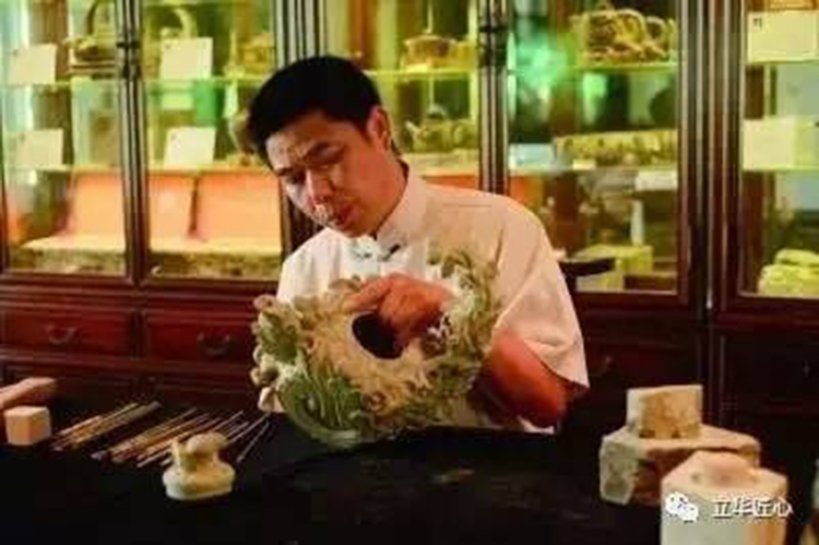 ?????? 蔡云娣自幼喜愛美術,在祖父及前輩的雕刻藝術熏陶下,執著地追求石雕藝術,在繼承祖父雕刻中國四大名硯的基礎上,于80年代初創立了石壺雕刻的新門類,辛勤耕耘了二十多年,形成了自己獨特的藝術風格。