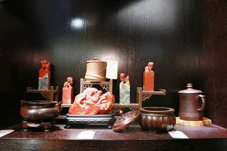 ????? 華韻·乾寶閣內除了蔡云娣大師的江南三雕藝術品外,還有面向大眾的各種江南特色雕刻藝術精品。