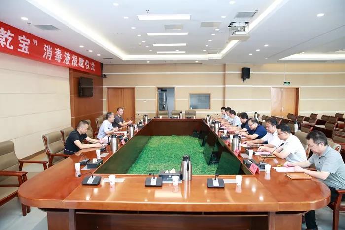 丘東介紹了江蘇乾寶生物科技有限公司的基本情況和“乾寶”消毒液的研發過程,對消毒液對人體無傷害、對消毒物品無毒害的安全性和無環境殘留的環保性作了說明,表示公司將承擔應盡的社會責任,發揮公司的力量,以實際行動支持疫情防控工作。
