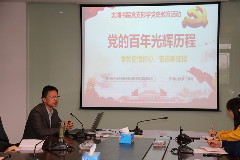 為深入學(xué)習(xí)習(xí) 近平總書記在黨史學(xué)習(xí)教育動(dòng)員大會(huì)上的講話精神,認(rèn)真貫徹落實(shí)中央和省委、市委、以及市社會(huì)組織黨委關(guān)于黨史學(xué)習(xí)教育活動(dòng)的實(shí)施方案,4月1日上午,太湖書院黨支部開展“黨的百年輝煌——學(xué)黨史,悟初心”學(xué)黨史專題教育活動(dòng),由黨史學(xué)習(xí)教育市委宣講團(tuán)成員、蘇州科技大學(xué)馬克思主義學(xué)院教授王建明同志進(jìn)行宣講,原黨支部書記丘亮輝、新一屆黨支部書記劉斌,以及支部黨員和入黨積極分子踴躍參加。