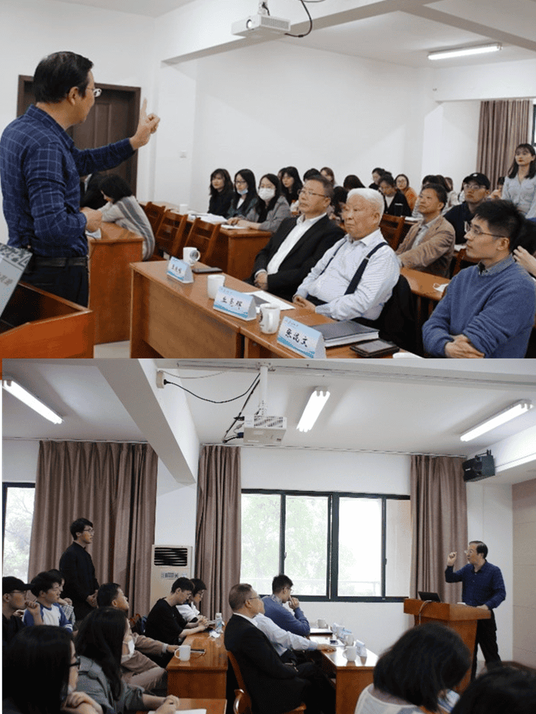 張其成院長以分析文化的三個層次為切入點,詮釋了中國傳統文化精神“一源三流,兩支五經”的內在深層結構,分析了中國傳統文化何以“博大”和“精深”,強調了易學在中國傳統文化精神形態中所處的軸心地位。以此為基礎,他把《易經》與儒家經典《論語》、道家經典《道德經》、佛學經典《六祖壇經》和中國傳統醫學經典《黃帝內經》等文本進行對照與互釋,闡明了易、道、儒、釋之間內在關系,即易為魂、道為骨、儒為風、佛為心,展現了易經為中國傳統文化精神的元精神。他指出,習 近平新時代中國特色社會主義思想是原初中國傳統文化精神在新時代的發揚光大,并為實現中華民族偉大復興匯聚生生不息的磅礴力量。張其成院長的精彩演講點燃了研究生濃厚的學術興趣,多名學生與張院長進行了學術互動。