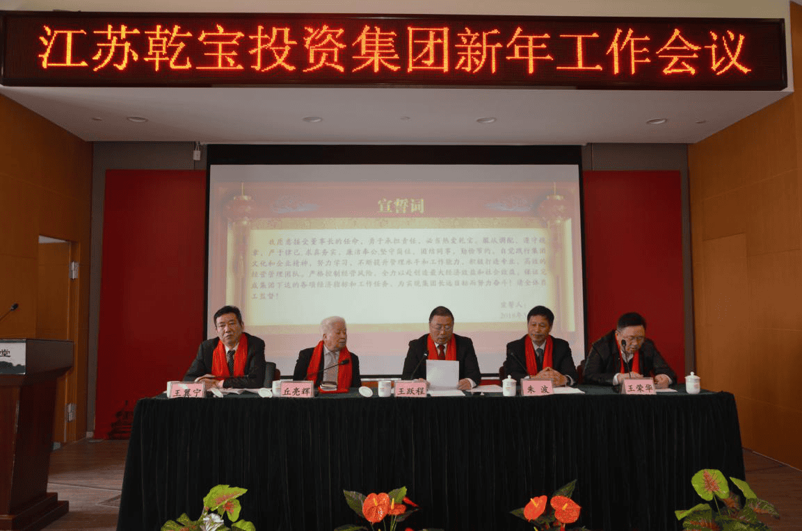 ? ? ? ?2018年3月1日,乾寶集團在太湖書院召開2018年新年工作會議。乾寶集團董事長王躍程、副董事長朱波、太湖書院山長丘老、執行總裁王翼寧、常務總裁王榮華及乾寶集團領導班子成員、各分公司總經理、各部門中層干部及先進員工代表參加了會議。會議由乾寶集團執行總裁王翼寧主持。