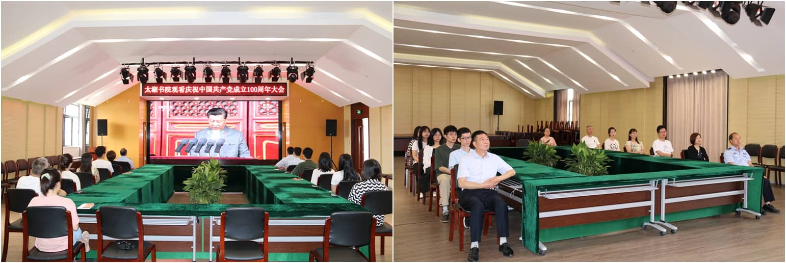 太湖書院黨支部積極組織支部黨員及入黨積極分子在太湖大講堂集中收看慶祝中國共產黨成立100周年大會直播,共同見證百年大黨的偉大盛典,喜慶中國共產黨建黨100周年。大家觀后紛紛表示,將銘記黨的百年輝煌歷程,始終牢記共產黨人的初心使命,繼往開來,昂揚奮進,以優異的工作業績為實現黨的第二個百年目標而努力奮斗。