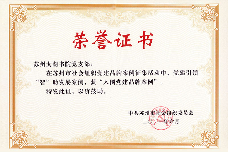 蘇州太湖書院黨支部獲“入圍黨建品牌案例”